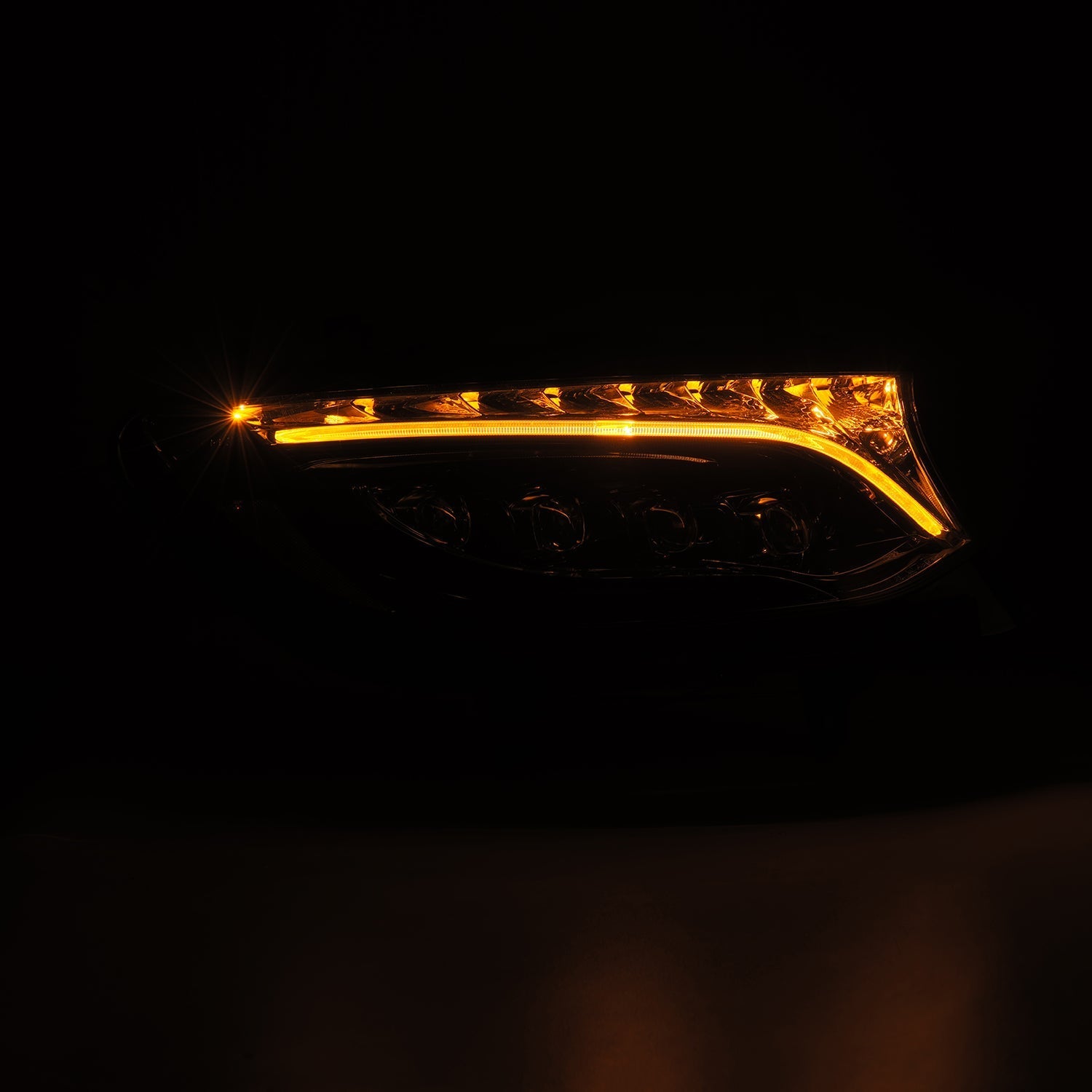 We have taken inspiration from the Mercedes-Benz GLS headlightsâ distinctive DRL and top turn signal design and seamlessly incorporated it into our 3rd gen Mercedes-Benz Sprinter NOVA-Series headlights. This fusion, combined with our signature 3D ice-cube NOVA projectors, results in a sleek and modern quad projector appearance. These Sprinter headlights offer more than just a clean design; they also feature an activation light feature that activates a running light when you unlock your Mercedes-Benz Sprinter, adding a touch of elegance to your 3rd gen Mercedes-Benz Sprinter. The top section of the headlights includes reflectors, and weâve integrated amber LEDs to create a sequential turn signal light for enhanced visibility. Beneath the top turn signal reflectors, the LED tubes can illuminate in both white and amber, serving as Daytime Running Lights (DRL) and seamlessly transitioning to amber sequential turn signals when your signal lights are engaged. All four projectors in these headlights function as low beams, while the inner two projectors also serve as high beams. This ensures superior visibility and safety when driving at night. With our 3rd gen Mercedes-Benz Sprinter NOVA-Series headlights, not only will you enjoy exceptional visibility, but youâll also make a bold statement that sets your 3rd gen Mercedes-Benz Sprinter apart from the rest.
