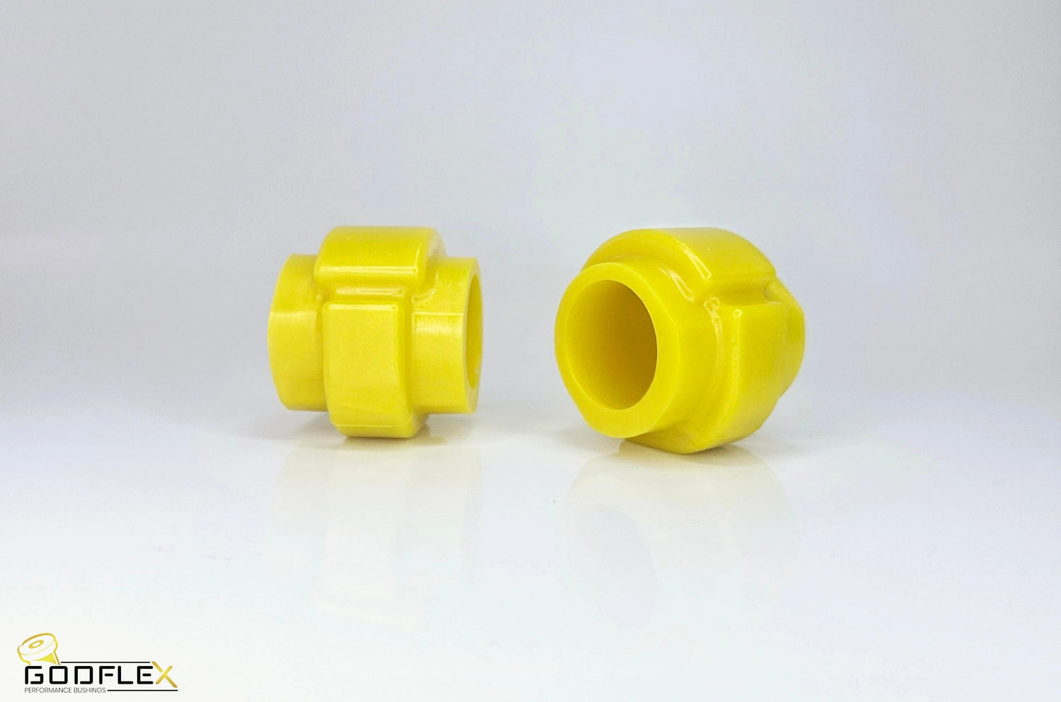 Audi A6 Inc Avant (02-05/98-01/2011+) & S6/RS6 (98-05/2012+) & (02-05/2012+) 29mm Polyurethane Front Anti Roll Bar Bushes Set of 2 Complete 29mm Polyurethane Uprated Bushes for the OEM Front Anti Roll Bar For your Audi A6 & S6/RS6 Models OEM Number: 4D0411327 Lightweight CNC Machined Bushing Sleeves Available Colours - Deep Space Blue, Aztec Yellow, Vortex Red/Violet Flip & Cosmic Green If no message is sent with colour requirements the default Aztec Yellow Gold will be sent Please send us a message if you require a custom colour that is not listed Aztec Yellow Gold Please message us if another colour is required What's Included ; GodFlex Performance Series Bushing Kit 2x Complete Polyurethane Bushes for The Front Anti Roll Bar 1x Sachets of bushing grease GodFlex Performance Series Polyurethane Bushing kits are a shore a hardness of 85, giving substantial stiffness over oem bushings (Similar stiffness to a PowerFlex purple for reference) Please Note Please allow 3-4 Days handling time with the full transformation kits, as products are made to order. Please Let us know if you are after a bespoke colour, not seen amongst our other products, we can make any colour you desire