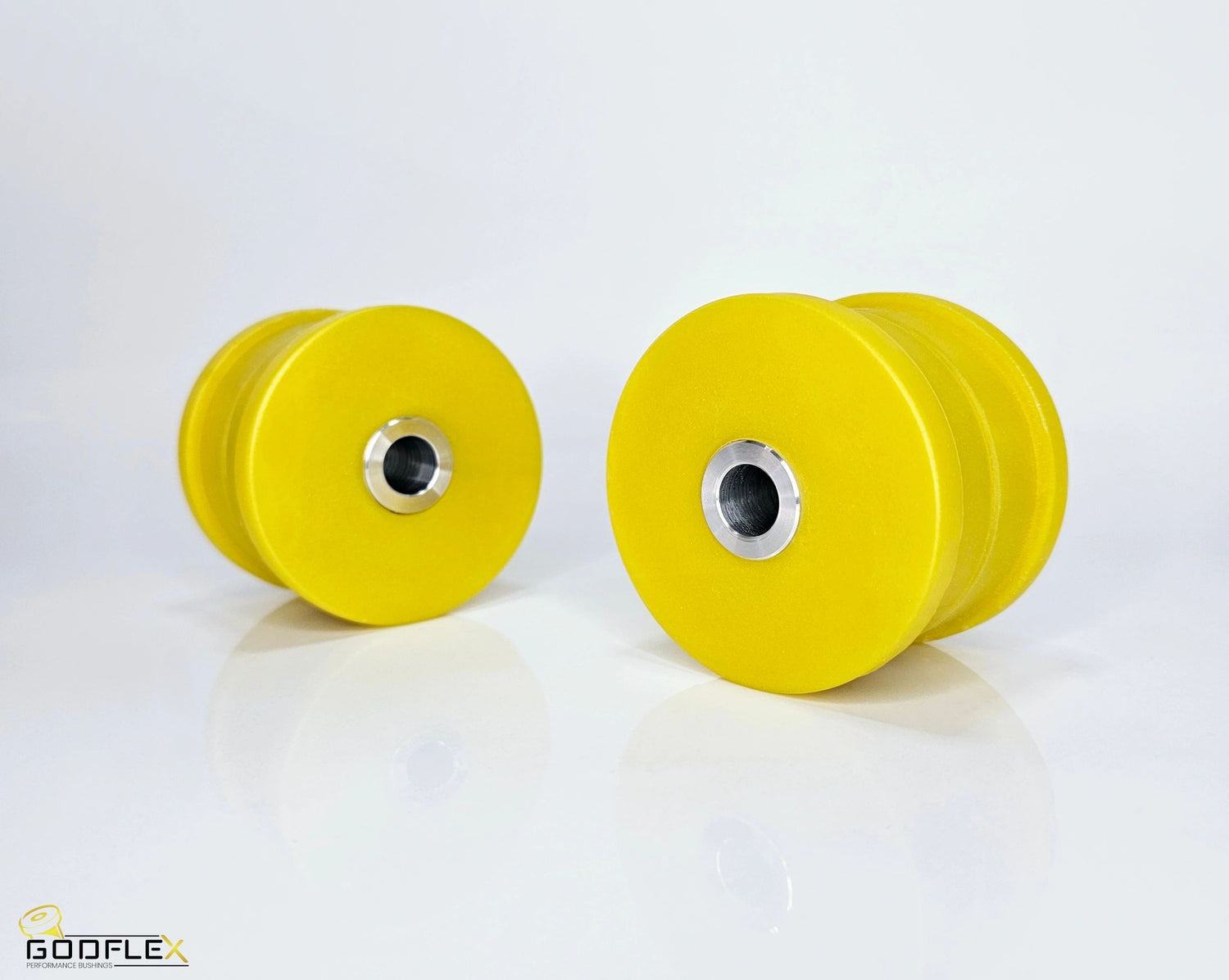 BMW E36 3 Series All Models (1991-1999) Rear Trailing Arm Bushes Kit Polyurethane Bushing Kit Set of 2 Complete Polyurethane Uprated Bushes for the Rear Trailing Arms For your E36 3 Series All Models Lightweight CNC Machined Bushing Sleeves What's Included ; GodFlex Performance Series Bushing Kit 2x Complete Polyurethane Bushes for The Rear Trailing Arms 2x High Quality Aluminium CNC Bushing Sleeves 1x Sachets of bushing grease GodFlex Performance Series Polyurethane Bushing kits are a shore a hardness of 85, giving substantial stiffness over oem bushings (Similar stiffness to a PowerFlex purple for reference) Please Note Please allow 3-4 Days handling time with the full transformation kits, as products are made to order. Please Let us know if you are after a bespoke colour, not seen amongst our other products, we can make any colour you desire GodFlex Performance Series - Shore A 85 With a Shore A Hardness of 85 our Performance Series bushes offer significant improvement over the oem rubber bushes offering much firmer control over the movement of suspension components and outlast rubber bushings tenfold without deteriorating.