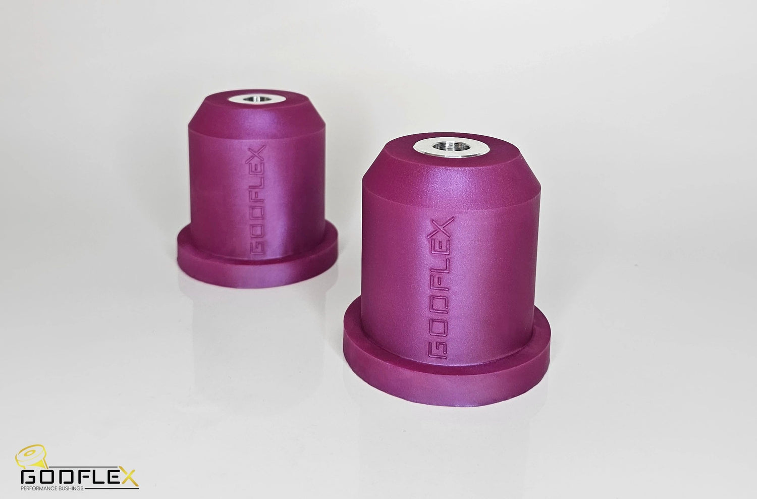Ford Fiesta Mk6 All Models Inc Zetec S/ST (2002-2008) Rear Axle Beam Mounting Bushes Bushing Kit Set of 2 Complete Polyurethane Uprated Bushes for the Rear Axle Beam For your Mk6 Ford Fiesta All Models Including ST / Zetec S 2002-2008 Lightweight CNC Machined Bushing Sleeves What's Included ; GodFlex Performance Series Bushing Kit 2x Complete Polyurethane Bushes for the Rear Axle Beam 2x Aluminium CNC Machined Bushing Sleeves 1x Sachets of Bushing Grease GodFlex Performance Series Polyurethane Bushing kits are a shore a hardness of 85, giving substantial stiffness over oem bushings (Similar stiffness to a PowerFlex purple for reference) Please Note Please allow 3-4 Days handling time with the full transformation kits, as products are made to order. Please Let us know if you are after a bespoke colour, not seen amongst our other products, we can make any colour you desire GodFlex Performance Series - Shore A 85 With a Shore A Hardness of 85 our Performance Series bushes offer significant improvement over the oem rubber bushes offering much firmer control over the movement of suspension components and outlast rubber bushings tenfold without deteriorating.