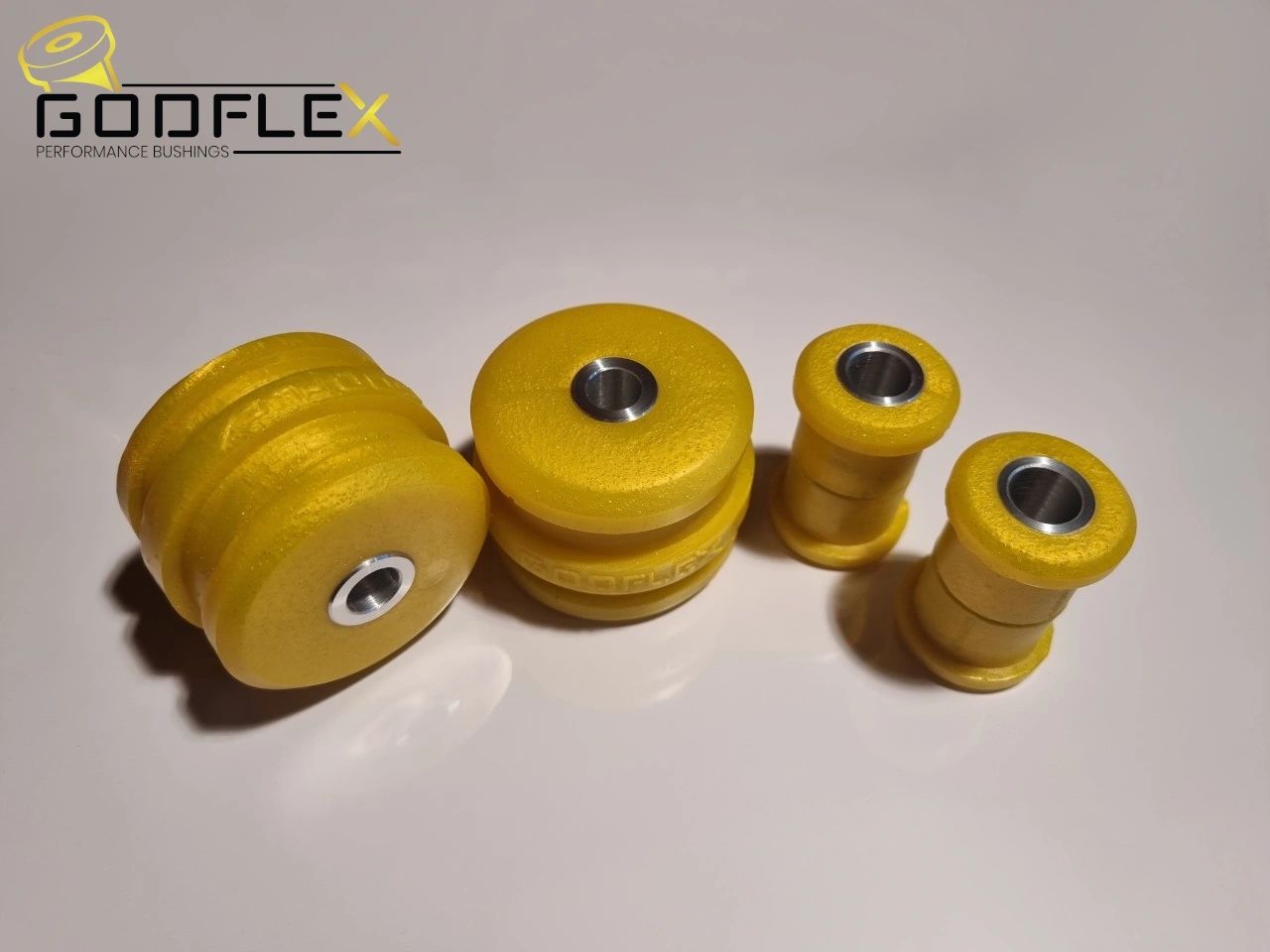 Ford Fiesta ST Mk7 / 7.5 (2013 - 2017) Polyurethane Front Suspension Arm Bushing Kit Uprated Handling Kit Set of 4 Complete Polyurethane Uprated Bushes for the Front Suspension Arms For your Mk7 / 7.5 Ford Fiesta ST Models 2013-2017 What's Included ; GodFlex Performance Series Bushing Kit 4x Complete Polyurethane Bushes for The Front Suspension Arms 1x Sachets of bushing grease GodFlex Performance Series Polyurethane Bushing kits are a shore a hardness of 85, giving substantial stiffness over oem bushings (Similar stiffness to a PowerFlex purple for reference) Please Note Please allow 3-4 Days handling time with the full transformation kits, as products are made to order. Please Let us know if you are after a bespoke colour, not seen amongst our other products, we can make any colour you desire