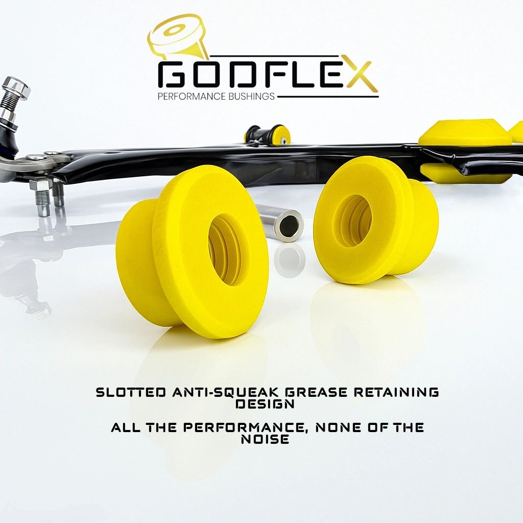From our honeycomb and infamous X-branded exhaust hangers to our slotted grease-retaining inner bushing bores, we hit both aesthetic and performance demands. We focus on the functionality of the bushes, ensuring minimal squeak, maximum performance and the ability to retain more grease over time than our competitors.