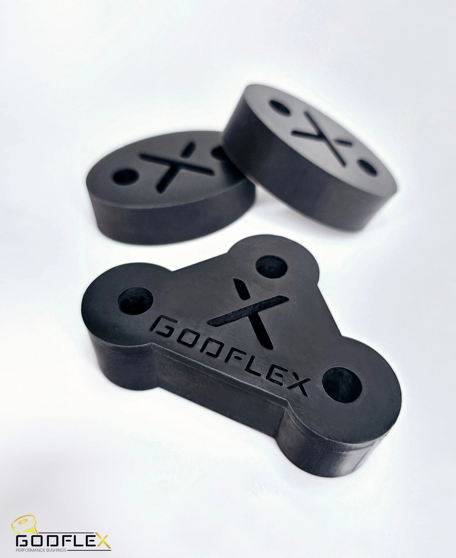 Honda Civic Type R EP3 2001-2005 Rigid Exhaust Hanger Bushing Kit Polyurethane Polyurethane A80 Rigid Exhaust Bush Kit (Normal Rubber is around A70 Hardness) For Extra Control over the movement of your Exhaust system for your Honda Civic Type R & S Models 01-05 What's Included ; GodFlex Performance Series Bushing Kit 1x Triangle Centre Exhaust Hanger Bushing 2x Muffler Exhaust Hanger Bushes GodFlex Performance Series Polyurethane Bushing kits are a shore a hardness of 85, giving substantial stiffness over oem bushings (Similar stiffness to a PowerFlex purple for reference) Please Note Please allow 3-4 Days handling time with the full transformation kits, as products are made to order. Please Let us know if you are after a bespoke colour, not seen amongst our other products, we can make any colour you desire