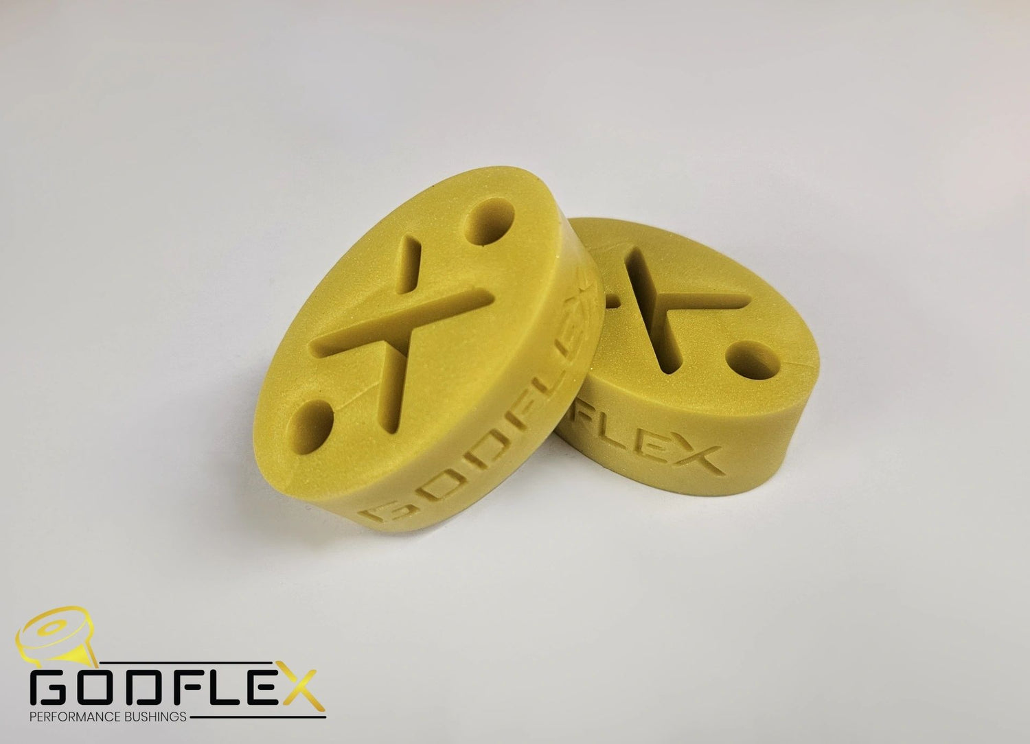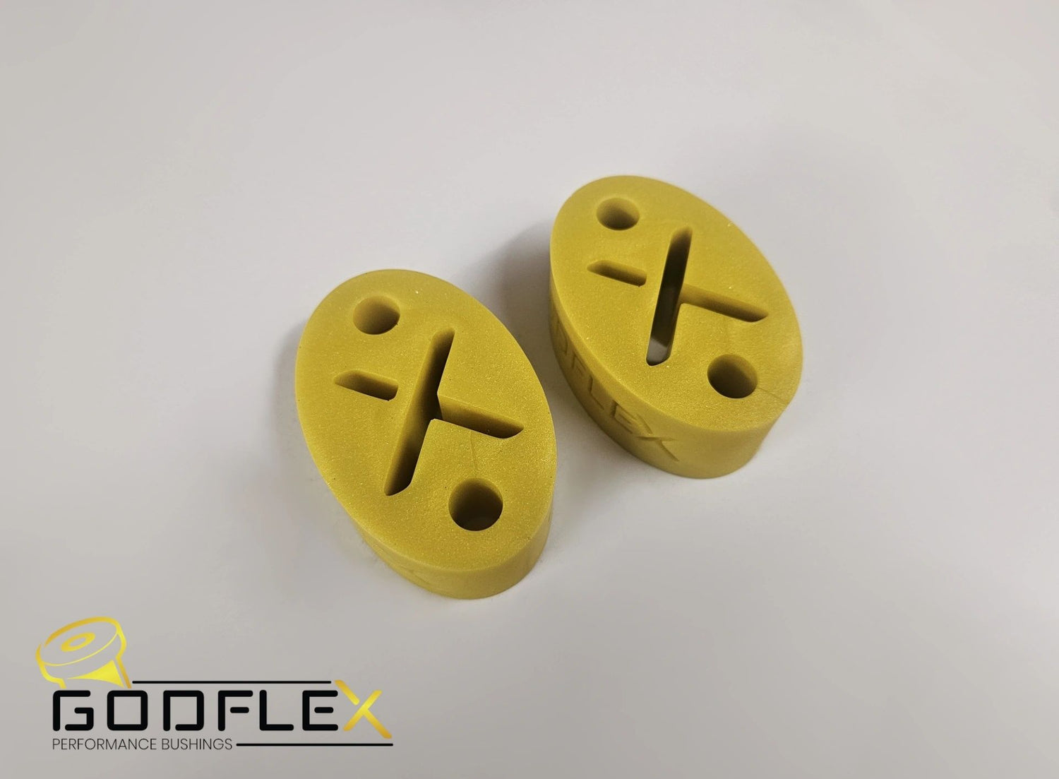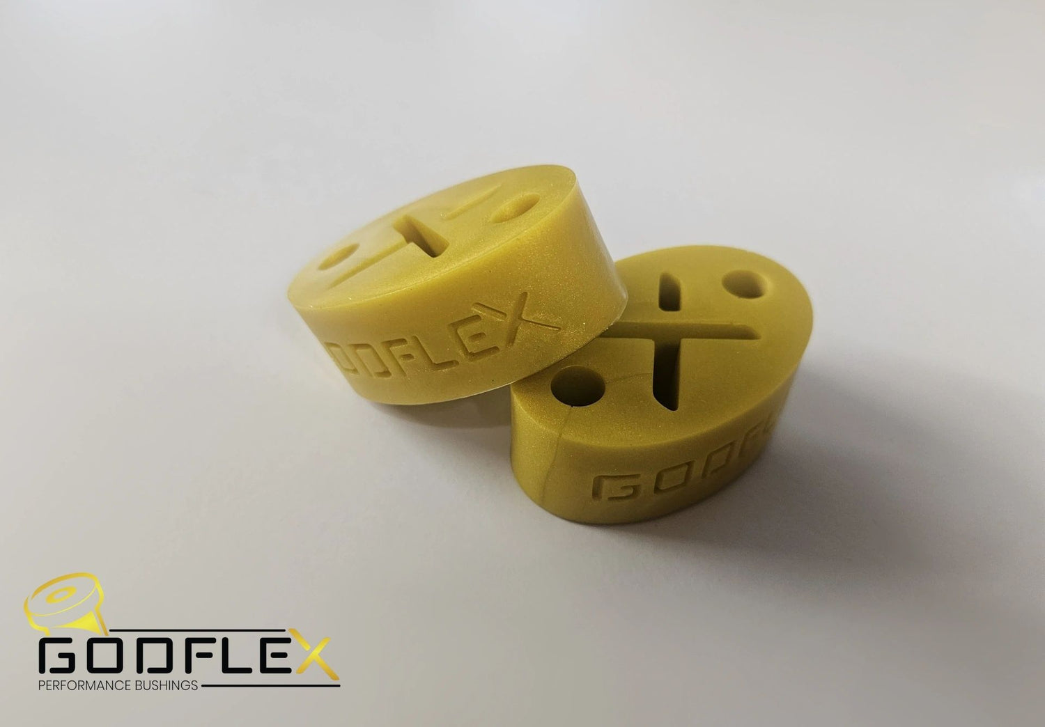MINI R56, R55, R57, R58, R59, R60 & R61 All Models Inc One, Cooper, D, S, SD & JCW 2005-2016 Rear Exhaust Hanger Bushes Uprated Rigid Polyurethane Bushing Kit Set of 2 Complete Polyurethane Uprated Bushes for the Rear Exhaust Boxes. Offers much firmer control and less movement over your Exhaust system as well as much longer life over the fast degrading poor quality of the OEM Rubber . For your R56, R55, R57, R58, R59, R60 & R61 Minis All Models Lightweight CNC Machined Bushing Sleeves Available Colours - Deep Space Blue, Aztec Yellow, Vortex Red/Violet Flip & Tein Green If no message is sent with colour requirements the default Aztec Yellow Gold will be sent Please send us a message if you require a custom colour that is not listed Aztec Yellow Gold Please message us if another colour is required What's Included ; GodFlex Performance Series Bushing Kit 2x Uprated Rigid Polyurethane Rear Exhaust Bushes GodFlex Performance Series Polyurethane Bushing kits are a shore a hardness of 85, giving substantial stiffness over oem bushings (Similar stiffness to a PowerFlex purple for reference) Please Note Please allow 3-4 Days handling time with the full transformation kits, as products are made to order. Please Let us know if you are after a bespoke colour, not seen amongst our other products, we can make any colour you desire