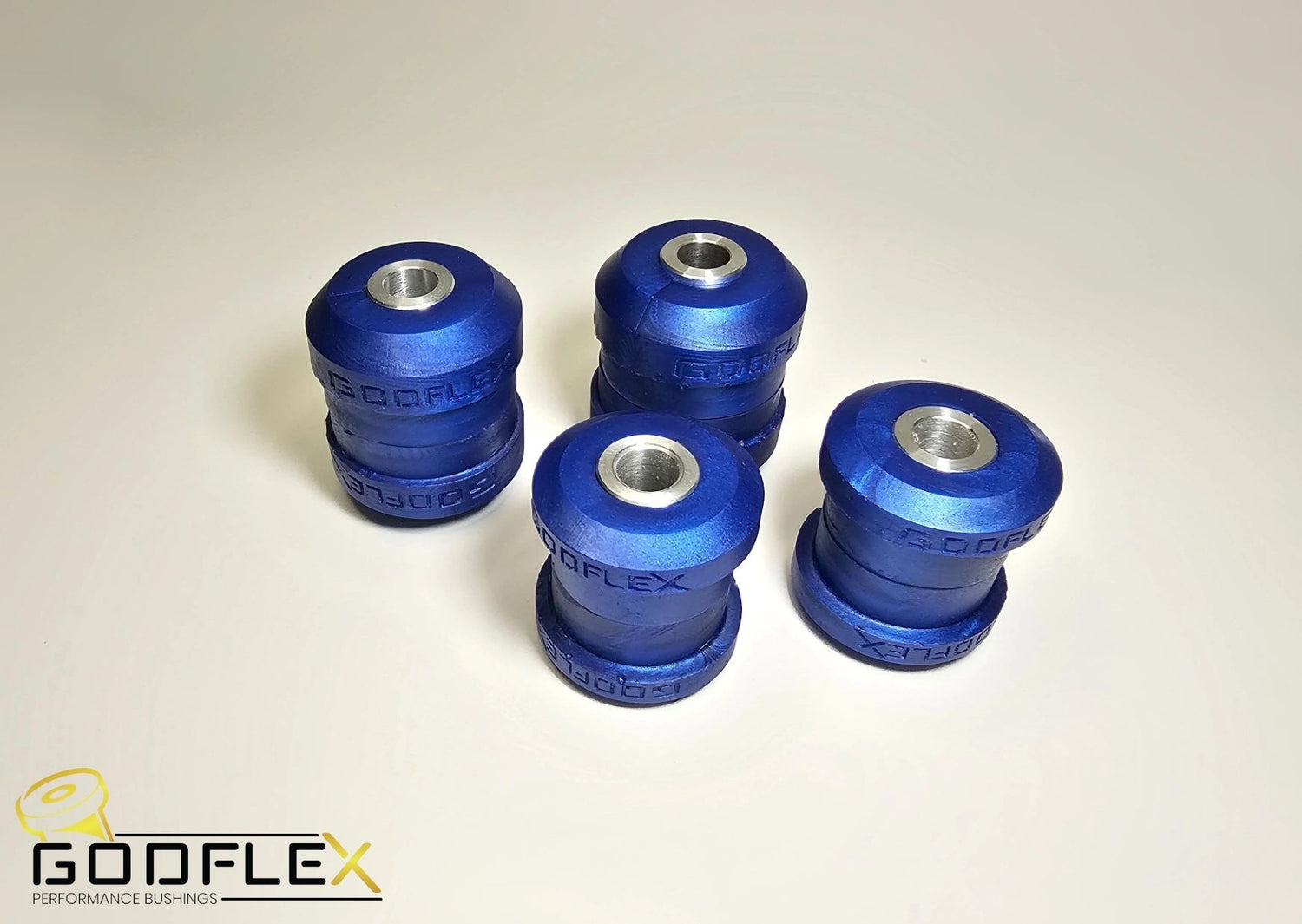 VW Golf 7 / 7.5 All Models (2012-2020) Rear Lower Spring Arm Bushes Complete Polyurethane Bush Kit Complete set of Rear Lower Spring Suspension Arm Bushes For your VW Golf 7/7.5 Mk7 All Models inc GTi & R (Non-Rear Beam) (2012-2020) Lightweight CNC Machined Bushing Sleeves Available Colours - Deep Space Blue, Aztec Yellow, Vortex Red/Violet Flip & Tein Green If no message is sent with colour requirements the default Deep Space Blue will be sent Please send us a message if you require a custom colour that is not listed Deep Space Blue Please message us if another colour is required What's Included ; GodFlex Performance Series Bushing Kit 4x GodFlex Rear Lower Spring Arm Bushes 4x High Quality CNC Machined Aluminium Sleeves 1x Sachets of bushing grease GodFlex Performance Series Polyurethane Bushing kits are a shore a hardness of 85, giving substantial stiffness over oem bushings (Similar stiffness to a PowerFlex purple for reference) Please Note Please allow 3-4 Days handling time with the full transformation kits, as products are made to order. Please Let us know if you are after a bespoke colour, not seen amongst our other products, we can make any colour you desire