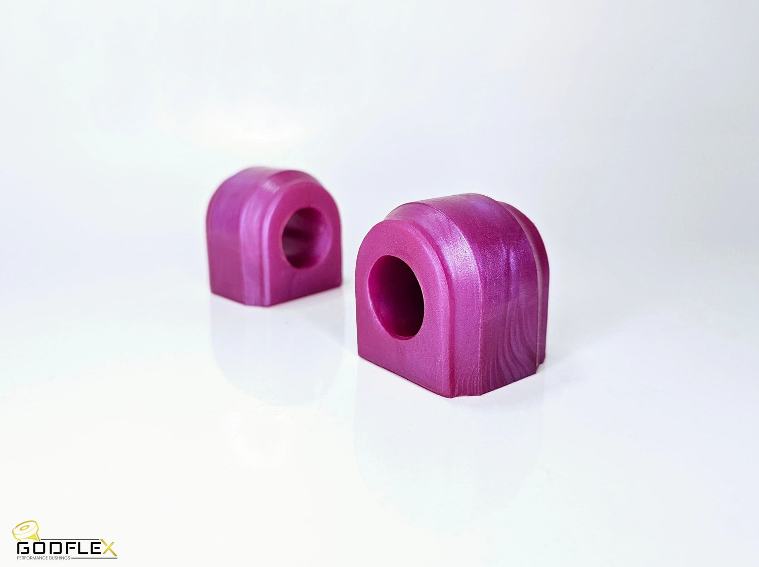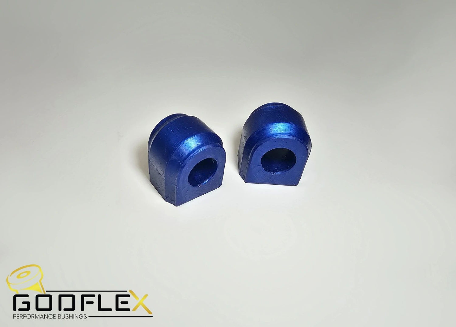 VW Golf 7 / 7.5 GTI Inc Clubsport (2012-2020) Rear Anti Roll Bar Bush Kit Complete Polyurethane Bush Kit Complete Set of Rear Anti Roll Bar Bushes (21.7mm) To Replace OEM Anti Roll Bar Bushes For your VW Golf 7/7.5 GTI Inc Clubsport Mk7 Models (2012-2020) Lightweight CNC Machined Bushing Sleeves Available Colours - Deep Space Blue, Aztec Yellow, Vortex Red/Violet Flip & Tein Green If no message is sent with colour requirements the default Deep Space Blue will be sent Please send us a message if you require a custom colour that is not listed Deep Space Blue Please message us if another colour is required What's Included ; GodFlex Performance Series Bushing Kit 2x Rear Anti Roll Bar Bushes (21.7mm) 1x Sachets of bushing grease GodFlex Performance Series Polyurethane Bushing kits are a shore a hardness of 85, giving substantial stiffness over oem bushings (Similar stiffness to a PowerFlex purple for reference) Please Note Please allow 3-4 Days handling time with the full transformation kits, as products are made to order. Please Let us know if you are after a bespoke colour, not seen amongst our other products, we can make any colour you desire